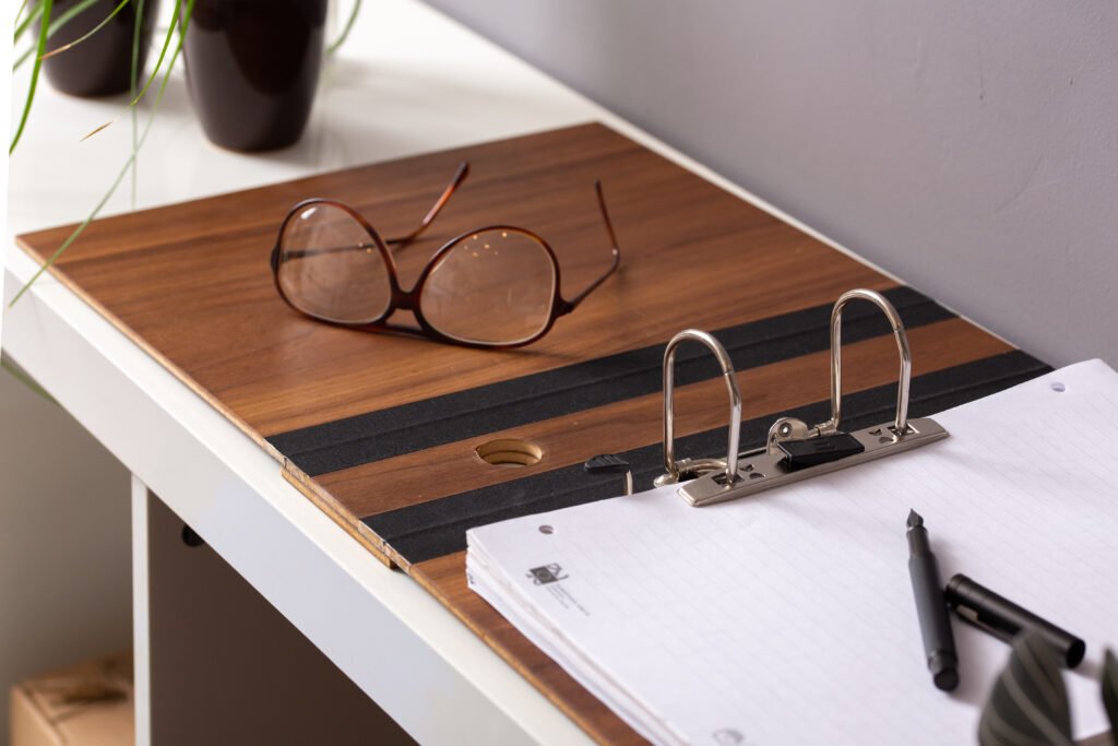 Ideja o REGISTRATORJU ZaMe se je porodila, ker se zavedamo, da nekatere dokumente v pisarni ves čas želite imeti pri roki in vendar bi radi, da lepo izgledajo. Tako smo za vas razvili izdelek, ki je lep in uporaben. Naj vaše pomembne listine dobijo novo obleko. V registrator je vgrajen mehanizem visoke kvalitete slovenskega proizvajalca. Trenutno so na izbiro vrste furnirja jesena, hrasta in oreha. Po naročilu lahko za vas izdelamo registrator tudi iz drugih materialov. REGISTRATOR ZaMe je ročno izdelan.