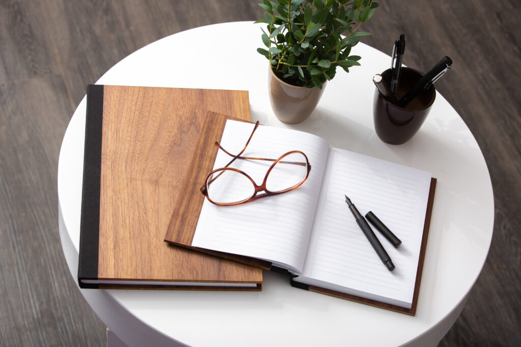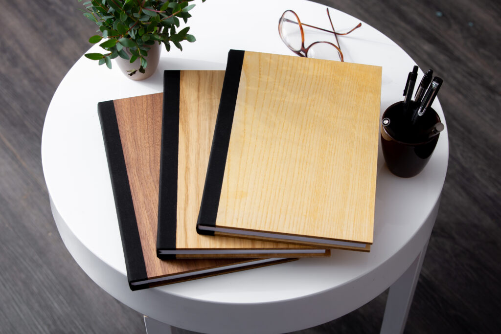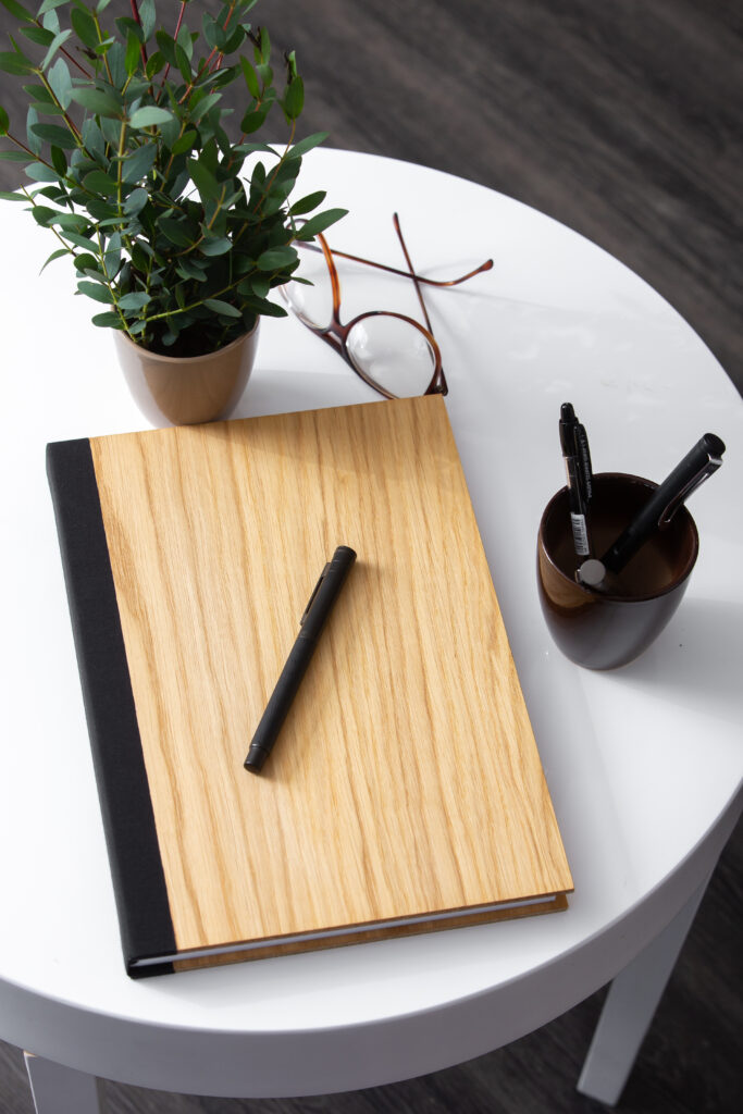 Notranjost POSLOVNIKA ZaMe je izdelana iz 100 g/m² brezlesnega visoko kvalitetnega papirja, da pisanje vanj gladko teče. Poslovnik smo izdelali v formatih A5 in A4 v črtasti in brezčrtni varianti. Blok je šivan in z ločilno vrvico. Furnir hrasta, oreha in jesena krasijo poslovnike in jim dajejo pridih narave. Po dogovoru možno tudi v drugih materialih. Bodite drugačni in podarite unikatno darilo – možno tudi graviranje. Vsak poslovnik je ročno izdelan.